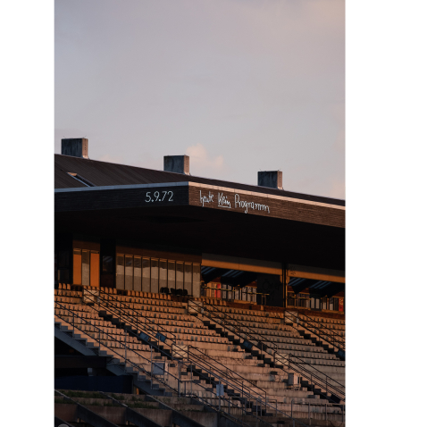 5.9.72 – heute kein Programm. Der Tag markiert eine radikale Unterbrechung. Das Attentat auf das Team der israelischen Mannschaft stellt eine jähe Zäsur der Olympischen Spiele dar. Im Moment des kaum zu fassenden Ereignisses machten die Künstler Peter Mell, Hans Poppel und Uwe Streifeneder einen Siebdruck, der das letzte Zeichen des erstmals stattfindenden Kulturprogramms sein sollte: – heute kein Programm – 5.9.72. Im Zentrum des Kunstprojekts von Fanti Baum & Sebastian Klawiter steht jener Moment der angehaltenen Zeit. Sie planen einen Neonlicht-Schriftzug im Areal der Kanu- und Ruderregattastrecke anzubringen und wollen so der radikalen Unterbrechung Platz einräumen. Denn der sich selbst aussetzende Satz verweist für sie auf eine Leerstelle und offene Wunde und vermag die Erinnerung wach zu halten an ein Ereignis, das die Welt erschüttert hat.